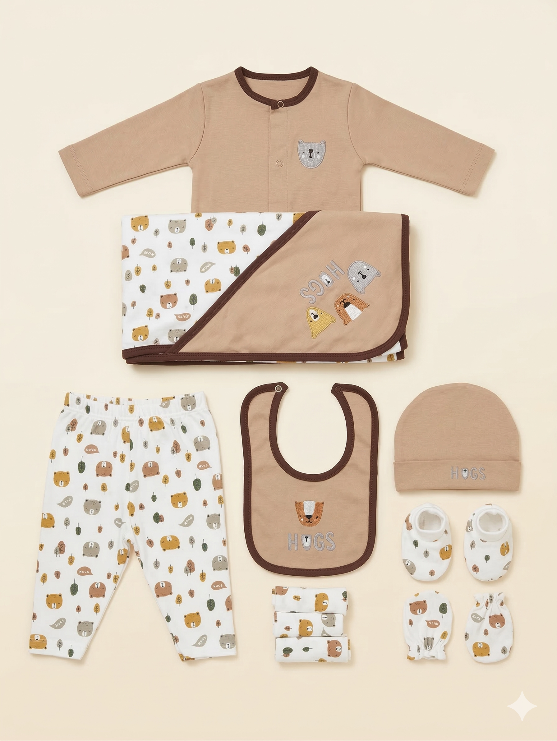 Bear Hugs Brown New Born 10pcs Starter Set