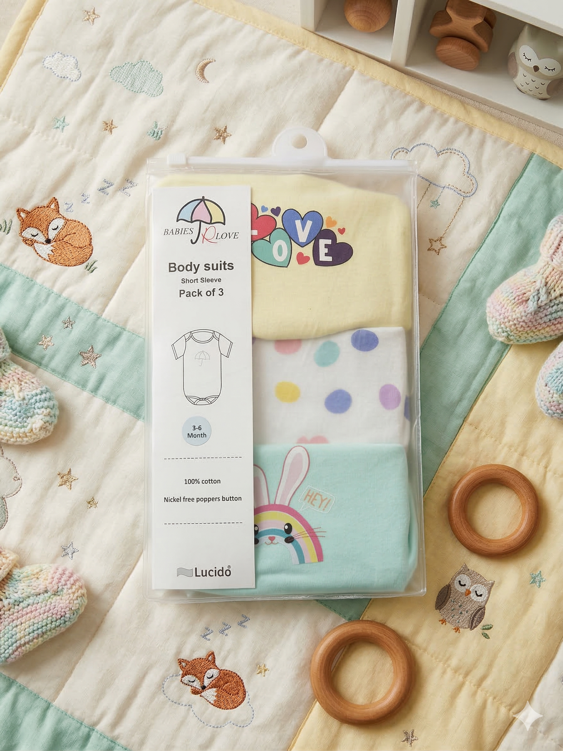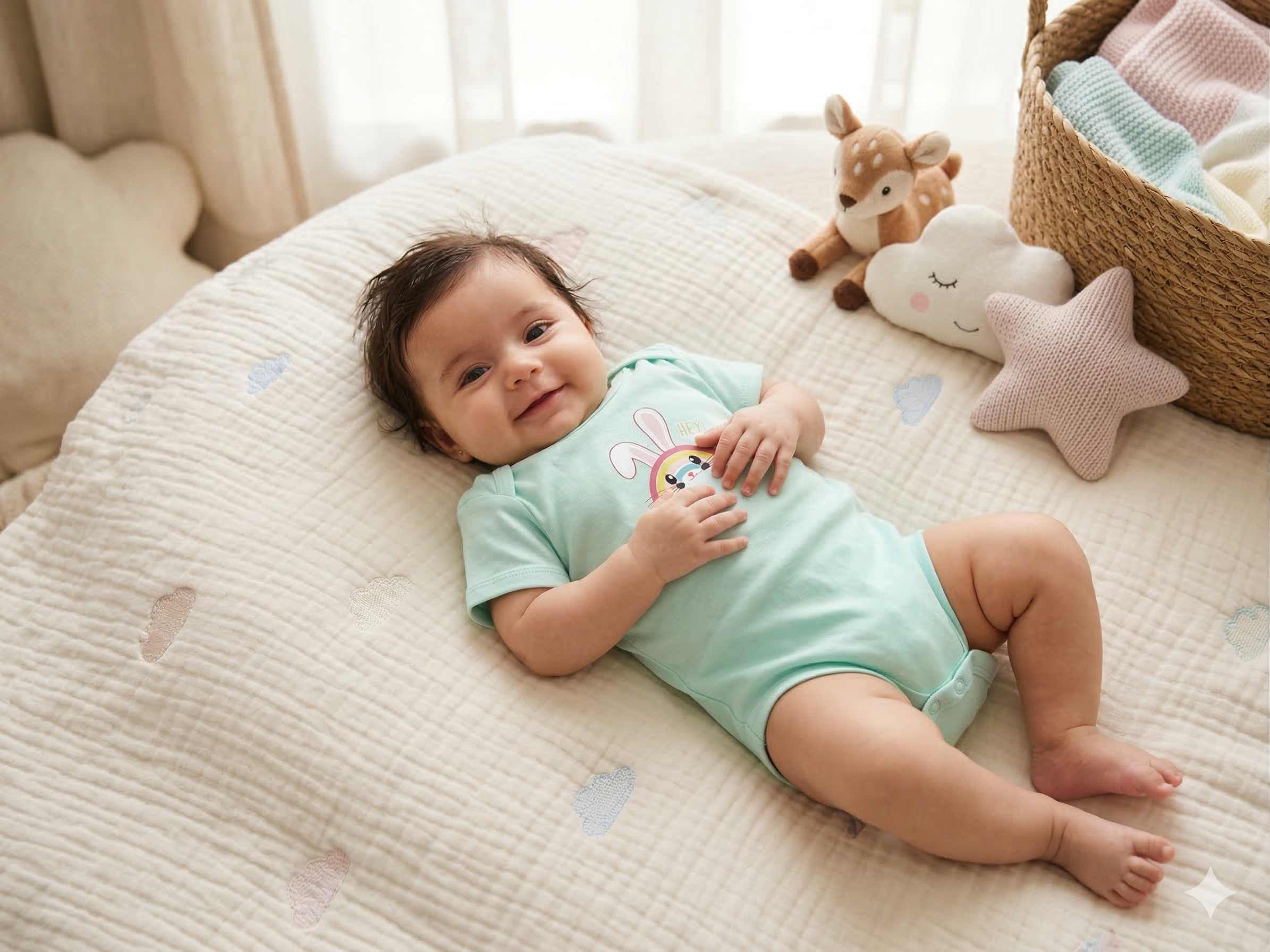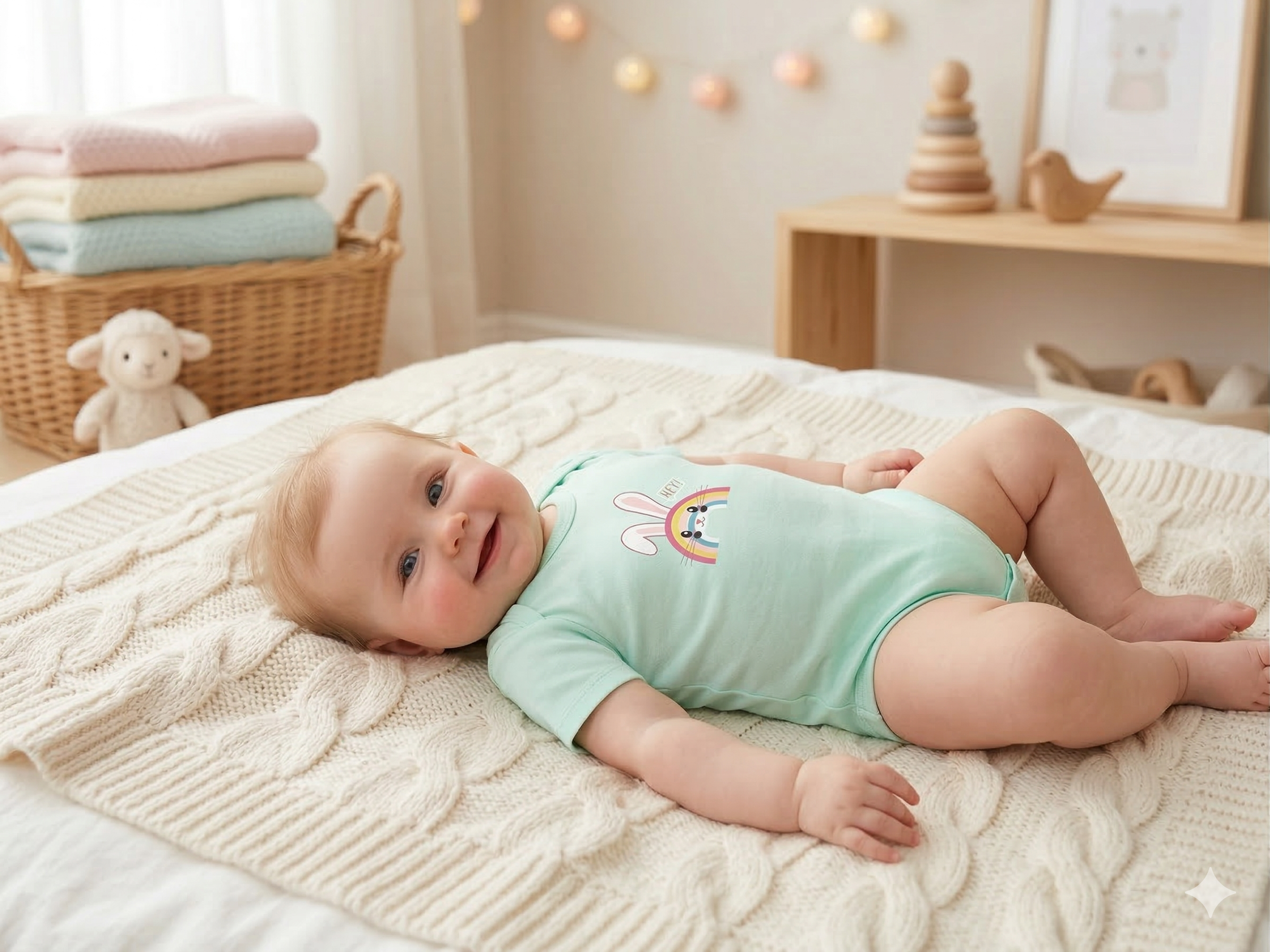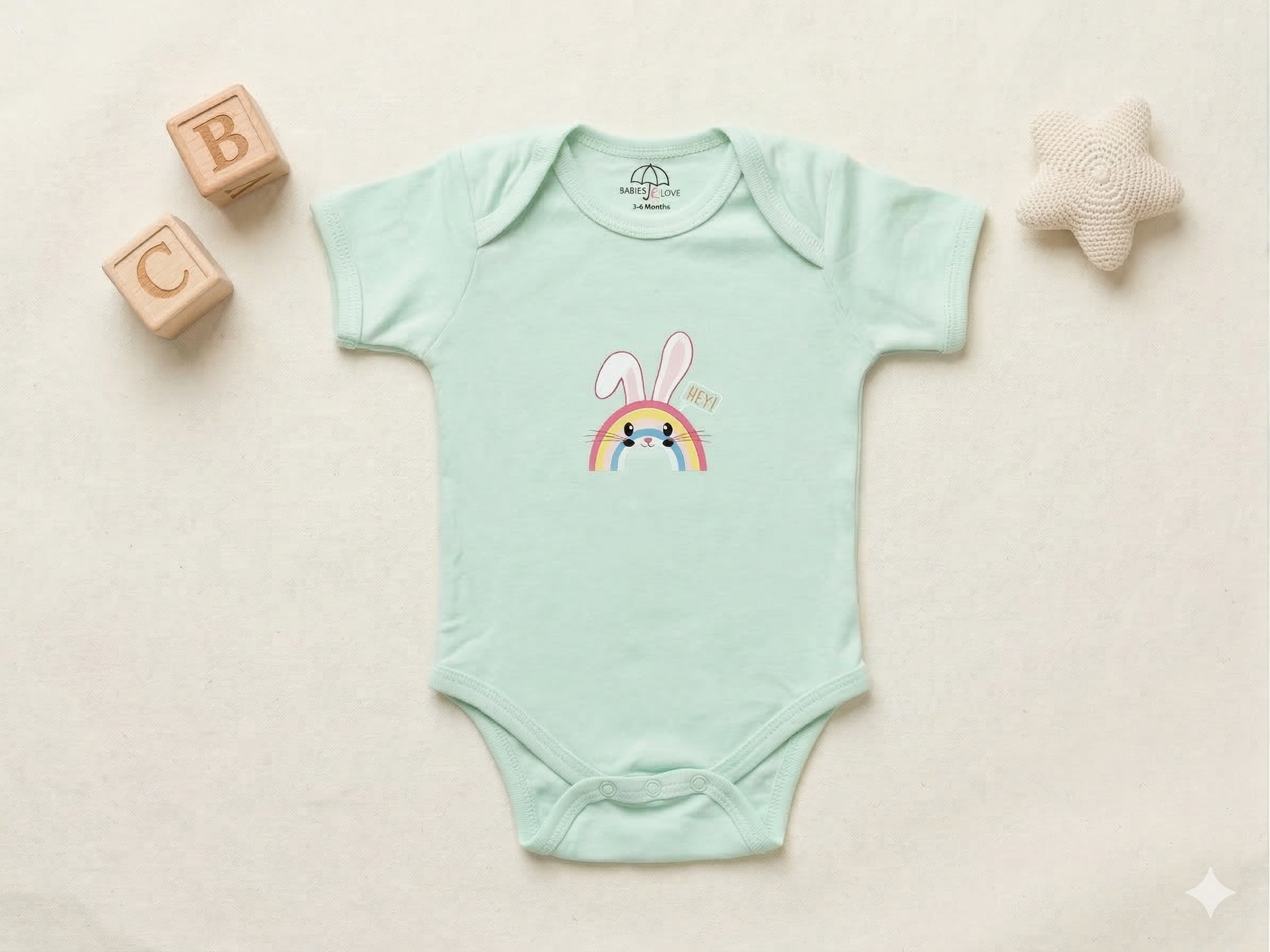 - Sea Green Body Suit – Rainbow with Bunny Ears & Face Design