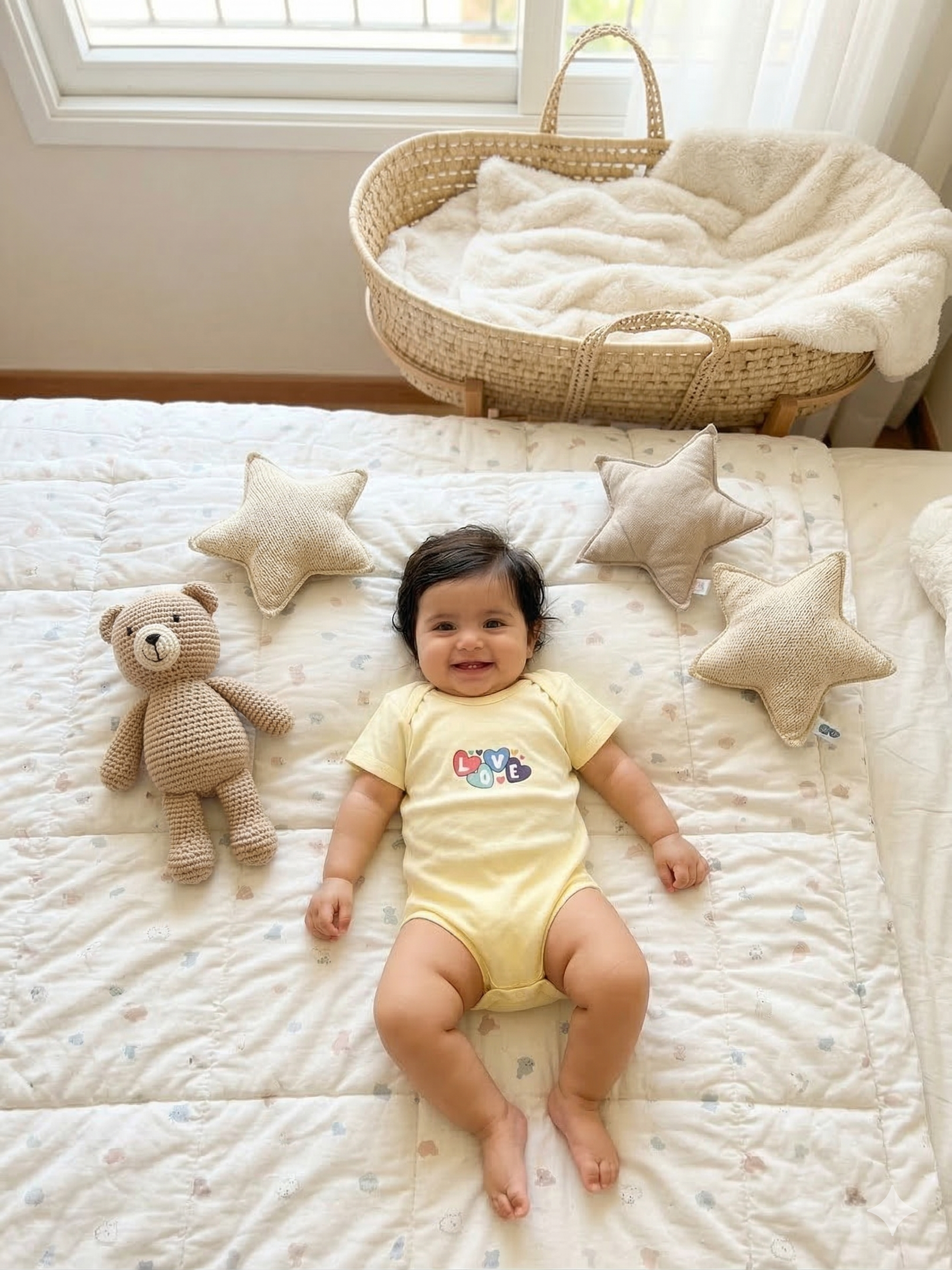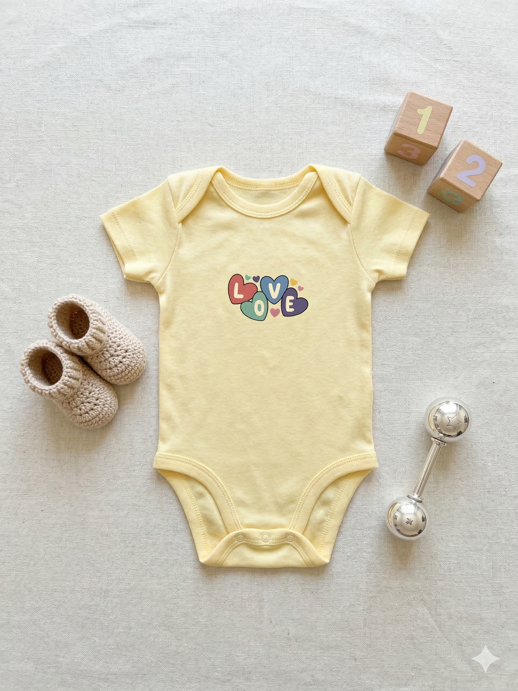 - Light Yellow Body Suit – Heart-Shaped “LOVE” Print